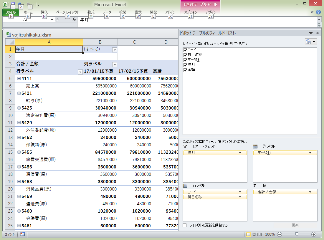 エクセルデータベースを利用し複雑な予実対比も簡単に実現