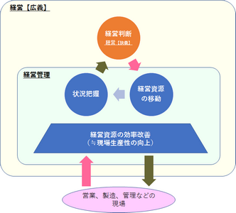 「経営管理」が主体的に行う、現場の業務プロセスを改善し投下した経営資源の効率を高める活動。